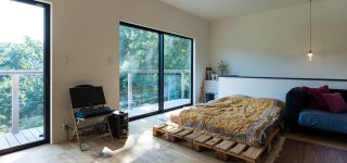谷から吹き抜ける風の通り道、一面に広がる緑のパノラマを見渡す高台に建つW邸。記念すべき「スケルトンハウス第1棟目」であるこの家は、「自分たち自身でクリエイトする家」というスケルトンハウスのコンセプトに共感いただいた若いご夫婦と一緒に作り上げたものです。24坪のコンパクトなサイズながら、ミニマムな設備と間仕切り無しの大胆な空間使い、緑に向かって大きく放たれた開口部によって、自然環境と一体化した伸びやかな住まいとなりました。子どもが生まれたら部屋を作ったり、今はあえてそのままの野趣を楽しんでいるという庭も未来の楽しみ。「この先もクリエイトし続けられる永遠に未完成の家に住んでいる、というのが僕らが一番気に入っている所」とW夫妻。 [ 2014年5月竣工、写真:東涌写真事務所 ] *メイキングブログを見る